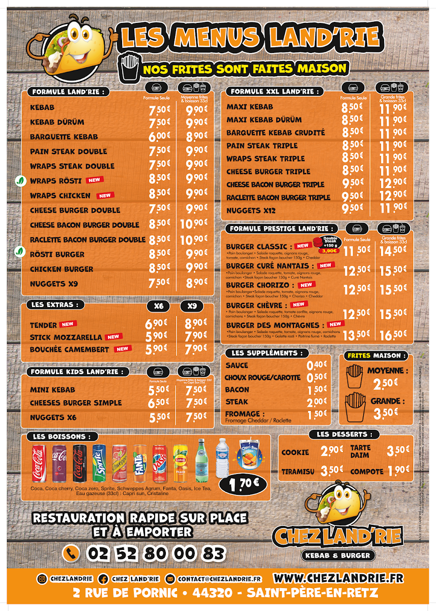 Welcome to CHEZ LAND'RIE, a culinary gem located in the heart of Saint-Père-en-Retz. This eatery serves up generously portioned kebabs that are nothing short of a flavor explosion. Diners rave about the tender, perfectly grilled meat, nestled in fresh bread, alongside house-made fries that achieve the ideal balance of crispness and melt-in-your-mouth goodness.
